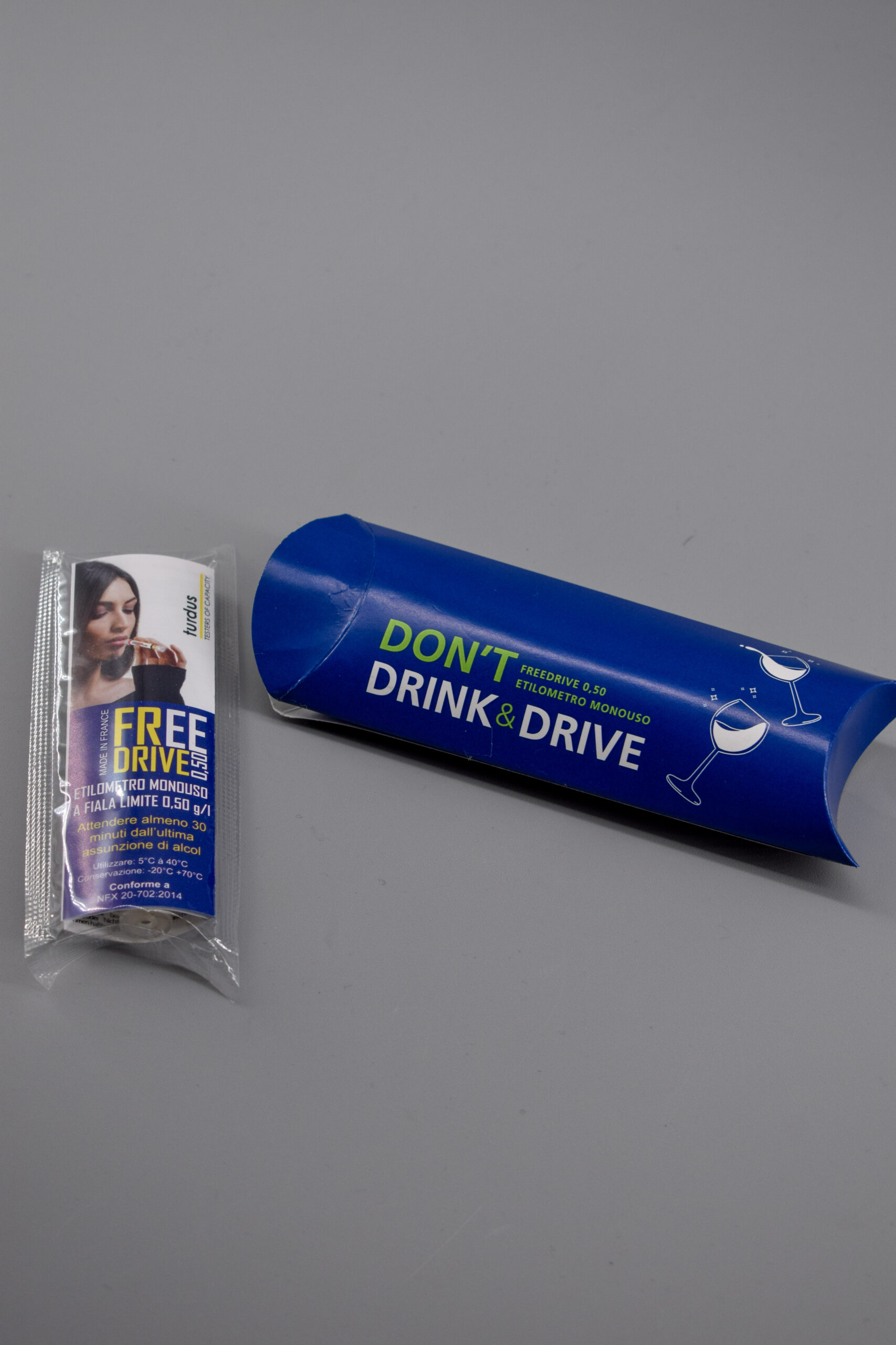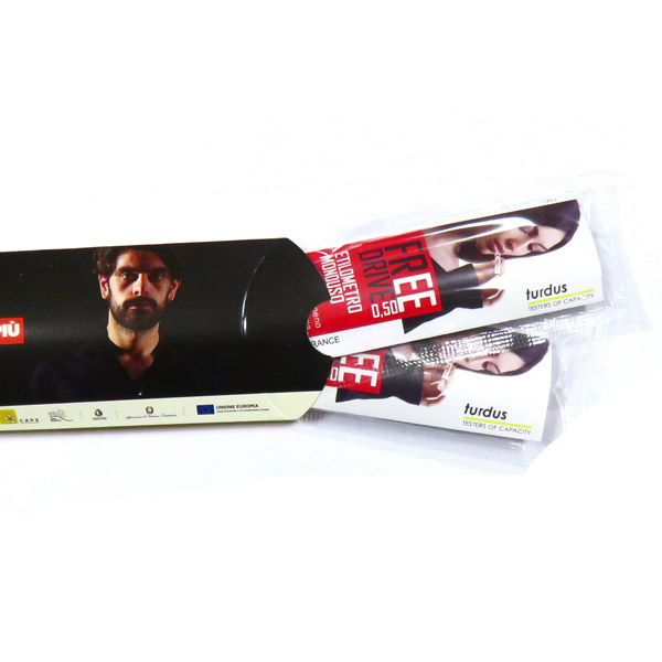 Mettiamo a disposizione un etilometri + un preservativo confezionato in un packaging ecologico interamente personalizzabile, una scatola in cartoncino monopatinato da 280gr stampanta fronte retro in quadricromia, con un’ottima resa grafica.